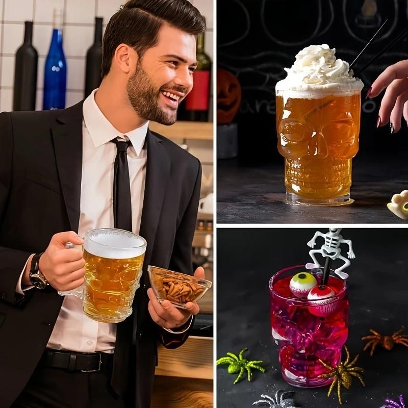 Classcial Pirate partner beer cup crystal glass Creative skull face bone with handle drinking wine Vodka Essential Bar